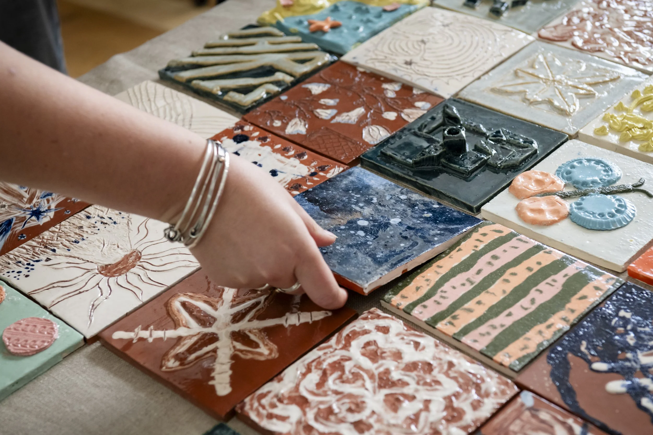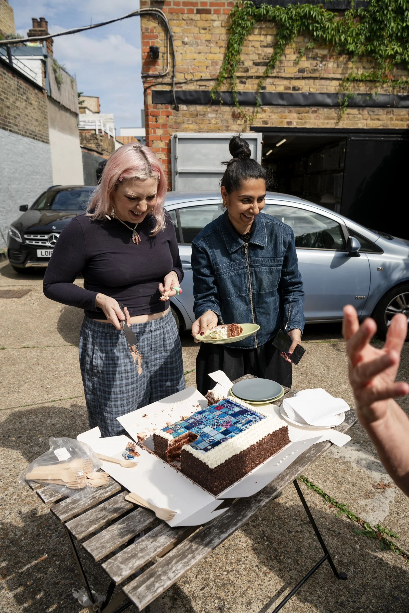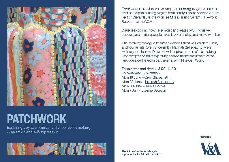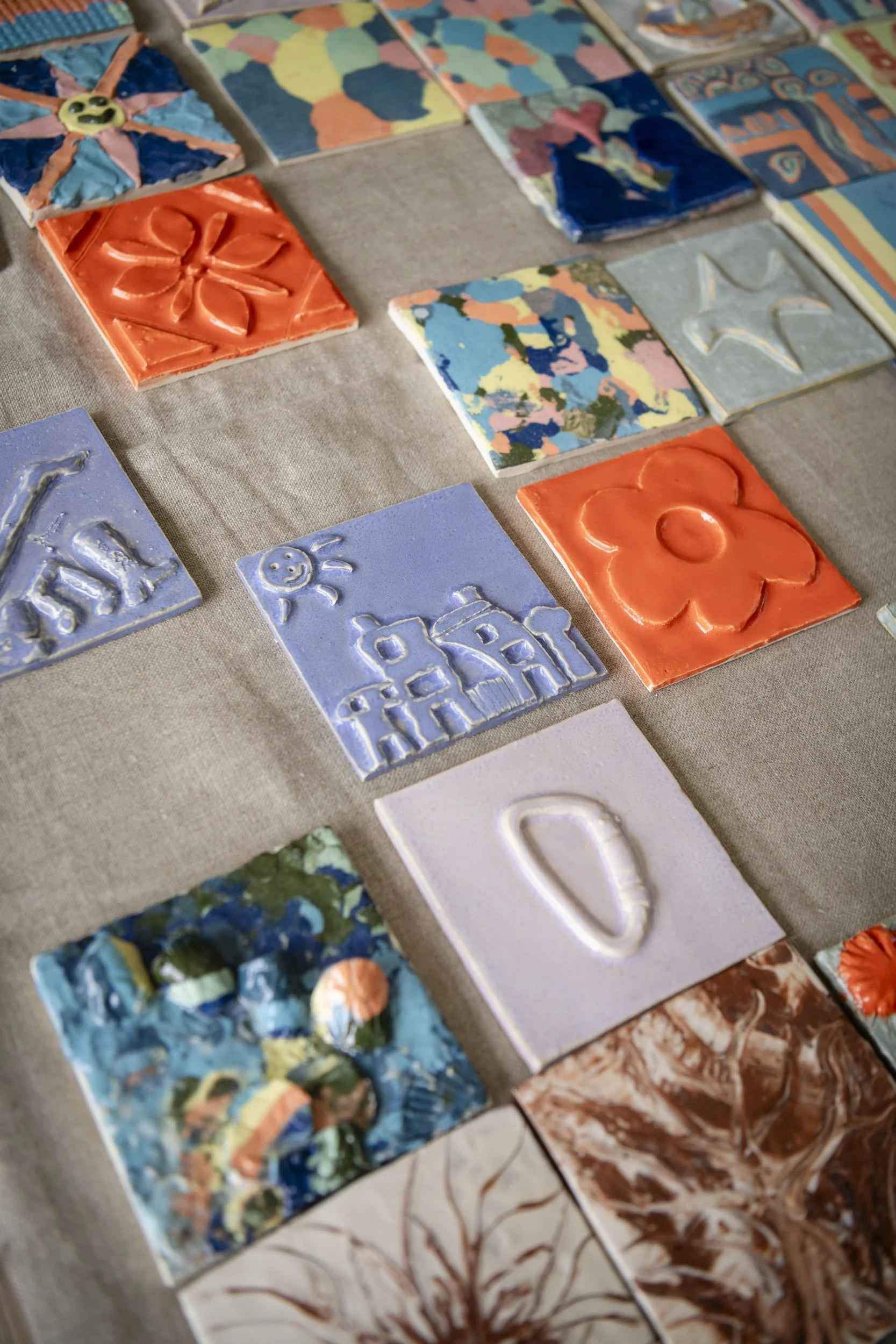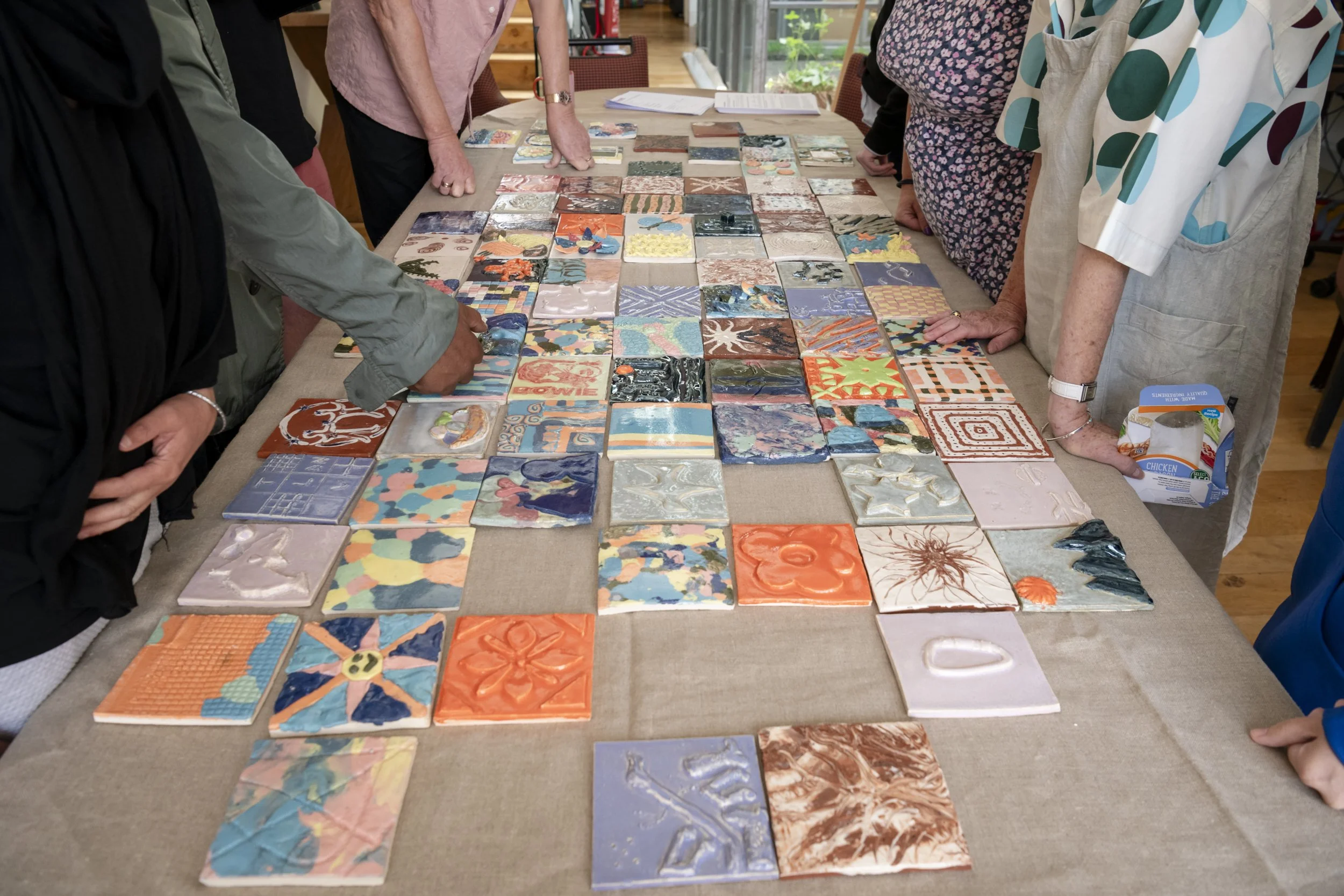 The culmination of these 4 sessions is a mosaic of tiles, each completely unique and beautiful, which we celebrated in August (complete with a tile inspired cake!) A selection of tiles, as decided by each individual apprentice, will be part of the V&A Residency Display from December 2025 - November 2026.